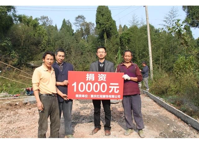 安岳商會副秘書長、中共安岳商會黨支部副書記、資陽市團工委駐渝工委副書記、重慶紅冠服飾總經(jīng)理李紅兵的家鄉(xiāng)安岳縣兩板橋鎮(zhèn)河邊村九社,是一個貧困的小山村,長期以來,村里通向外面的機耕路大坑連小坑,雨天一身泥,晴天一身灰,外面的車進不來,村里農(nóng)副產(chǎn)品運不出,嚴重影響村社經(jīng)濟發(fā)展和村民致富。為了打通道路,村里決定由村民集資并申請政府給予一定的補助,把這條小路加寬修好,該路于2011年 1月開工,李紅兵聞訊后,立即帶頭捐款兩千元修路,但由于經(jīng)費不足,修路工作進展緩慢,到2012年底再度停工,李紅兵了解到這一情況,決定再次捐贈10000元作為修路的經(jīng)費,在他的支持下,這條道路于春節(jié)前全面竣工。