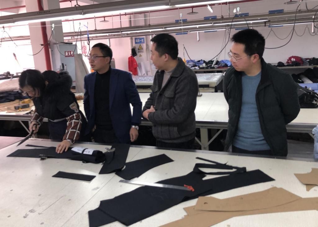 在李總的陪同下,王豪同志一行分別對公司的裁剪車間、縫制車間、質檢包裝車間進行了實地考察,李總詳細的介紹公司對產品質量的控制流程,一是從產品的原材料采購進行嚴格控制,以確保產品合格;二是嚴格把控生產工藝流程,從每一道工序做起,實行工位責任制;三是嚴守質量檢驗,不合格的產品堅決不出廠。